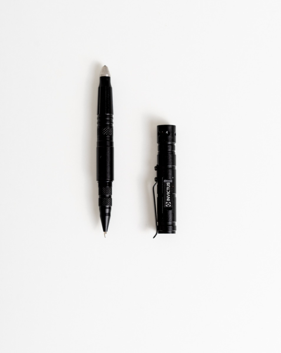 Caneta estereográfica de tinta preta.